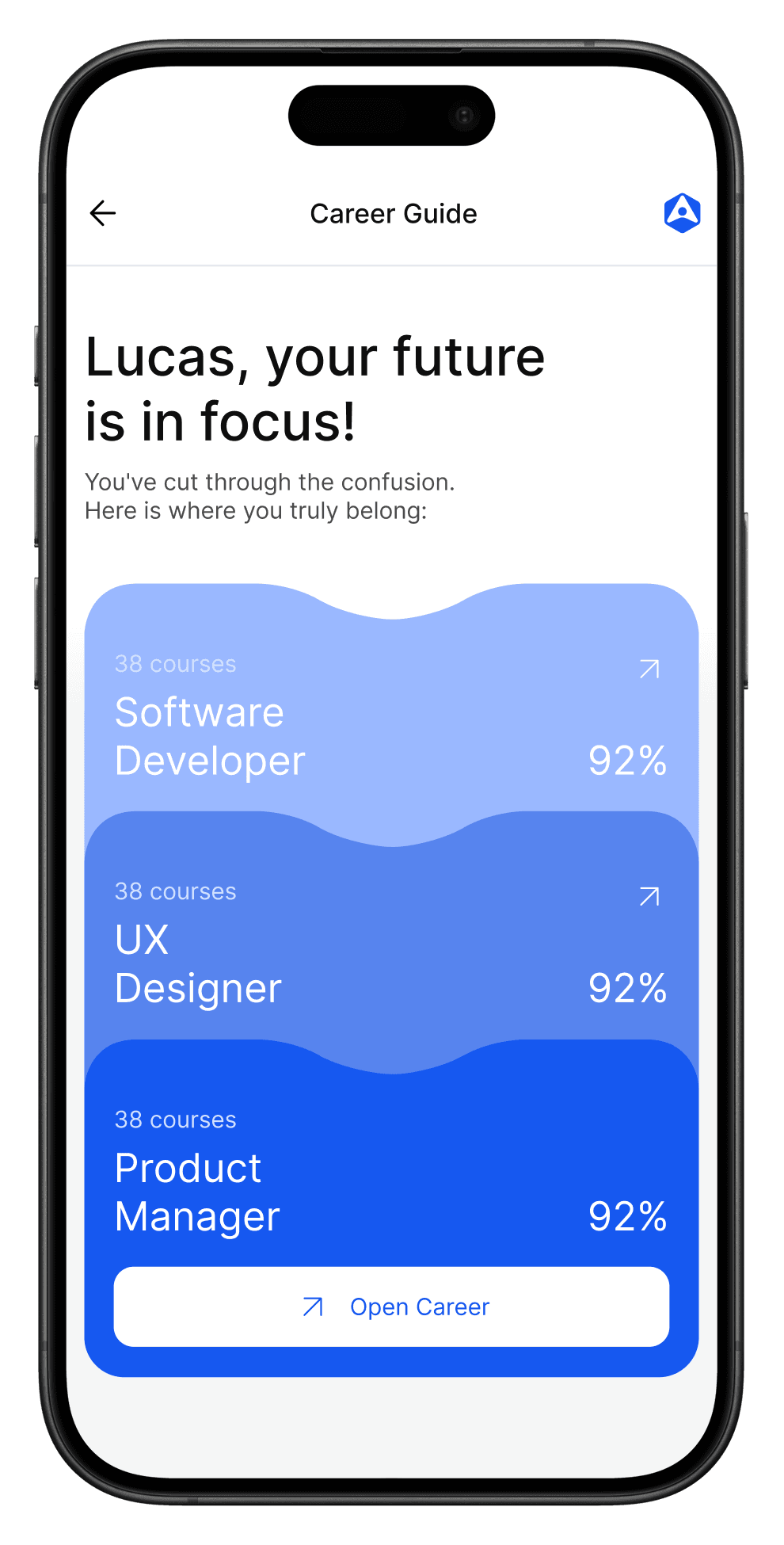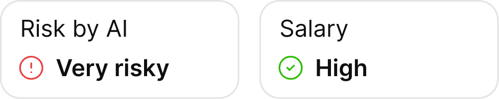 Every career recommendation includes a proprietary risk analysis to see how safe your future role is from AI automation